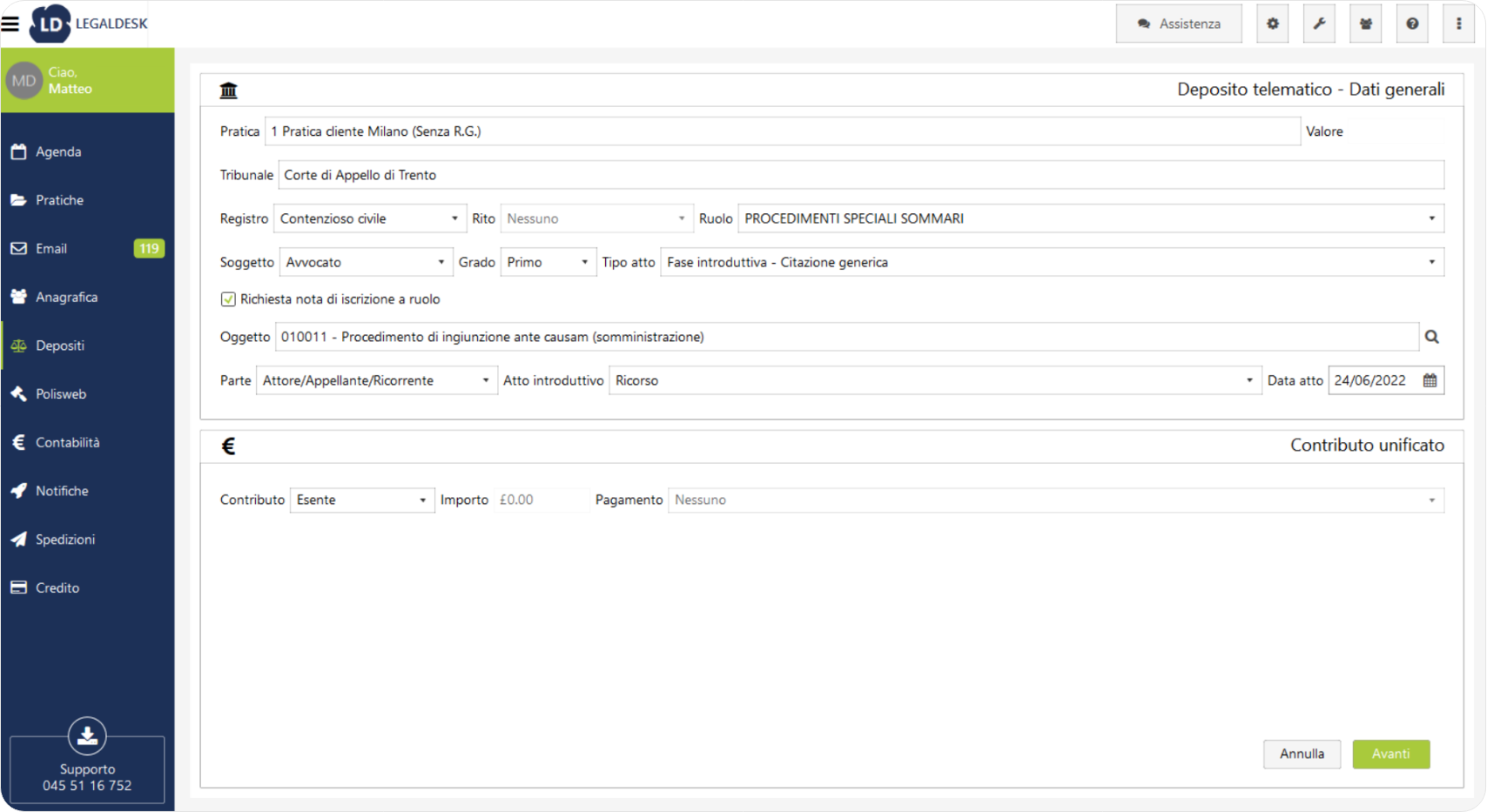 Depositi gli atti attraverso PCT in pochi click e controlli lo stato di quelli inviati. Scarichi le scadenze, le udienze e sincronizzi e scarichi i documenti in pochi secondi, direttamente sul tuo PC