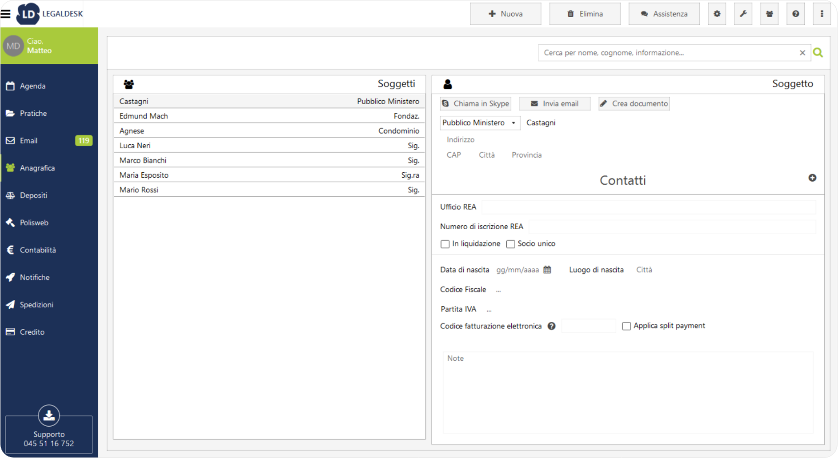 Gestisci i contatti e i clienti, hai il collegamento con le pratiche, calcoli il codice fiscale e verifichi la partita IVA