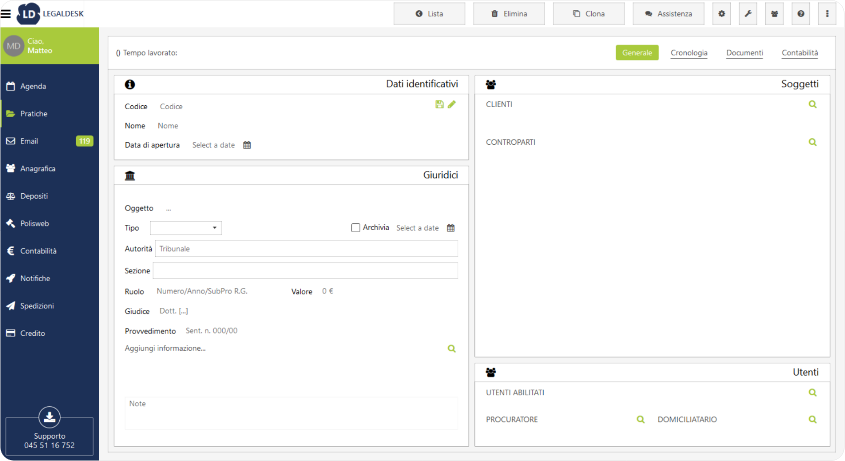 Sì, LegalDesk è un sistema multi utente, pensato per collaborare, scambiare e condividere pratiche e l’agenda.