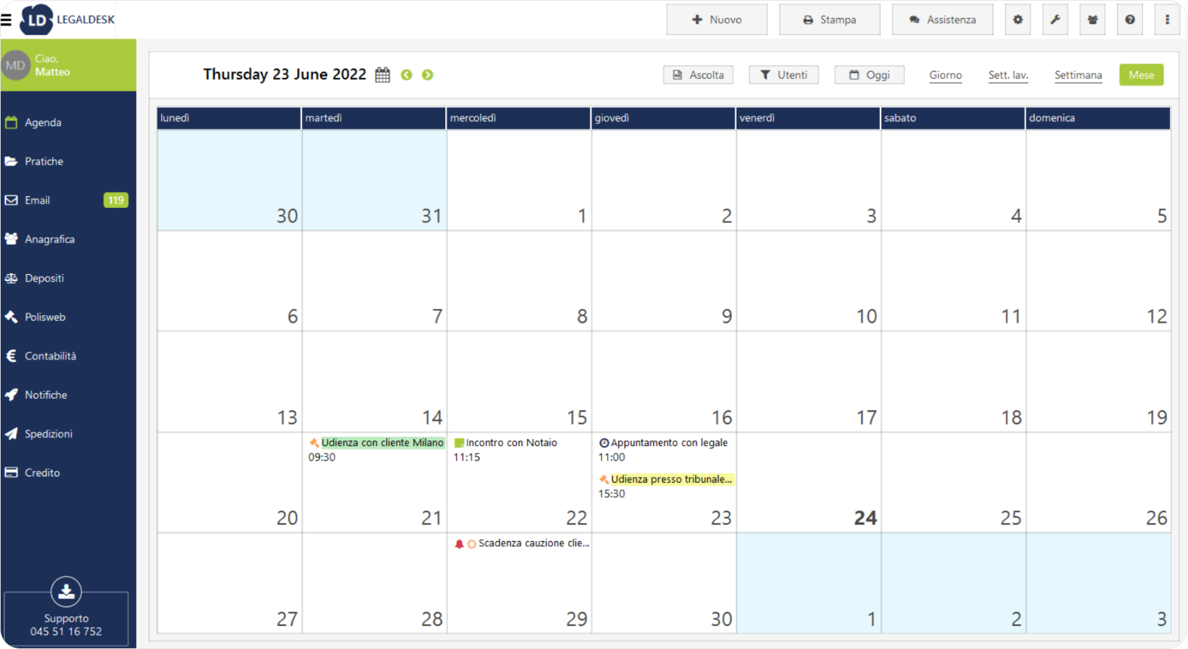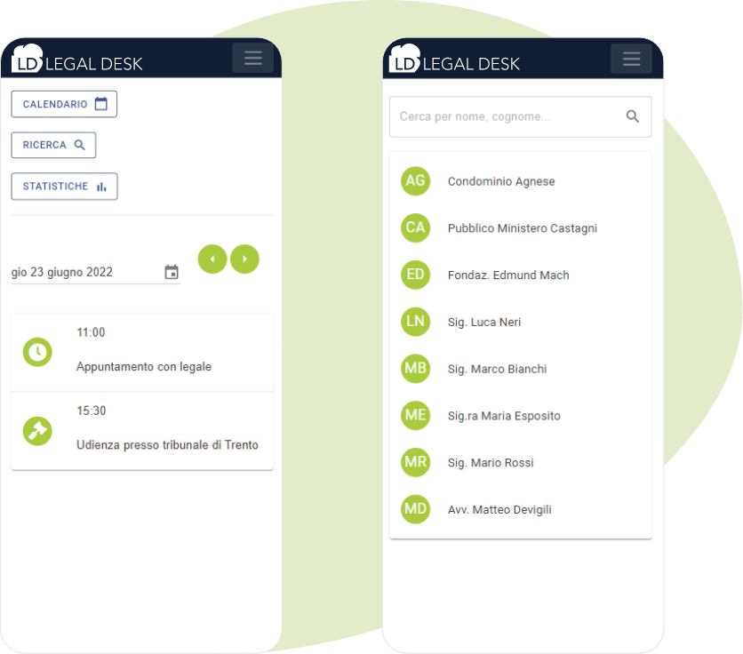 Gestisci udienze, scadenze, appuntamenti, telefonate, email, visualizza gli eventi in Google Calendar e su iOS e Android, esporta l’agenda in PDF o in Excel per stamparla e portarla con te
